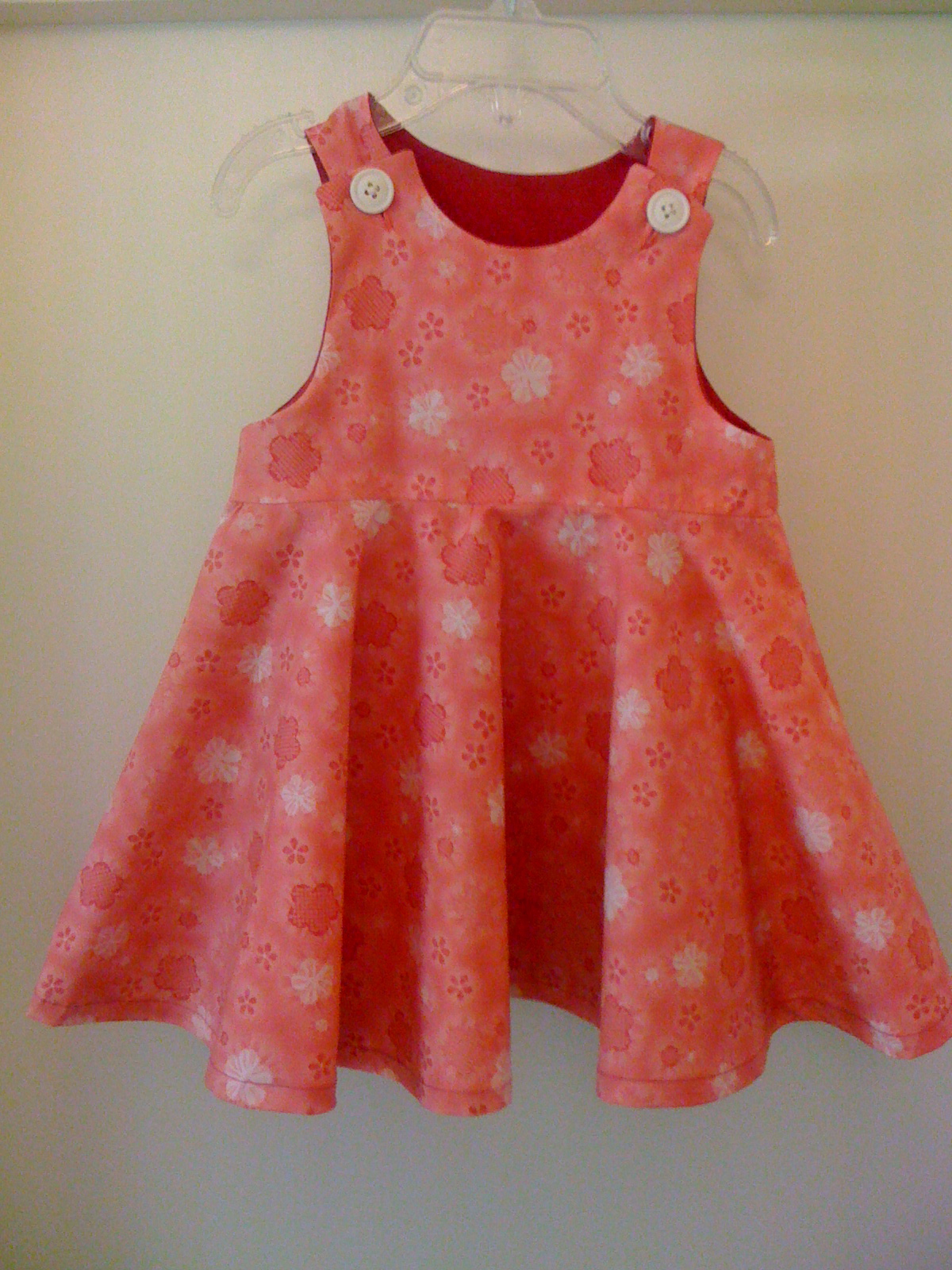 This is another Cherry Blossom jumper for a 1 -2 year old. I put a flounce on the bottom instead of gathers. I love the fulness a circle skirt bottom gives to a dress. This jumper is fully lined. $38. Contact me at kirshaq(at)gmail(dot)com if you would like to order this. You can pay me via paypal and I will send it to you.