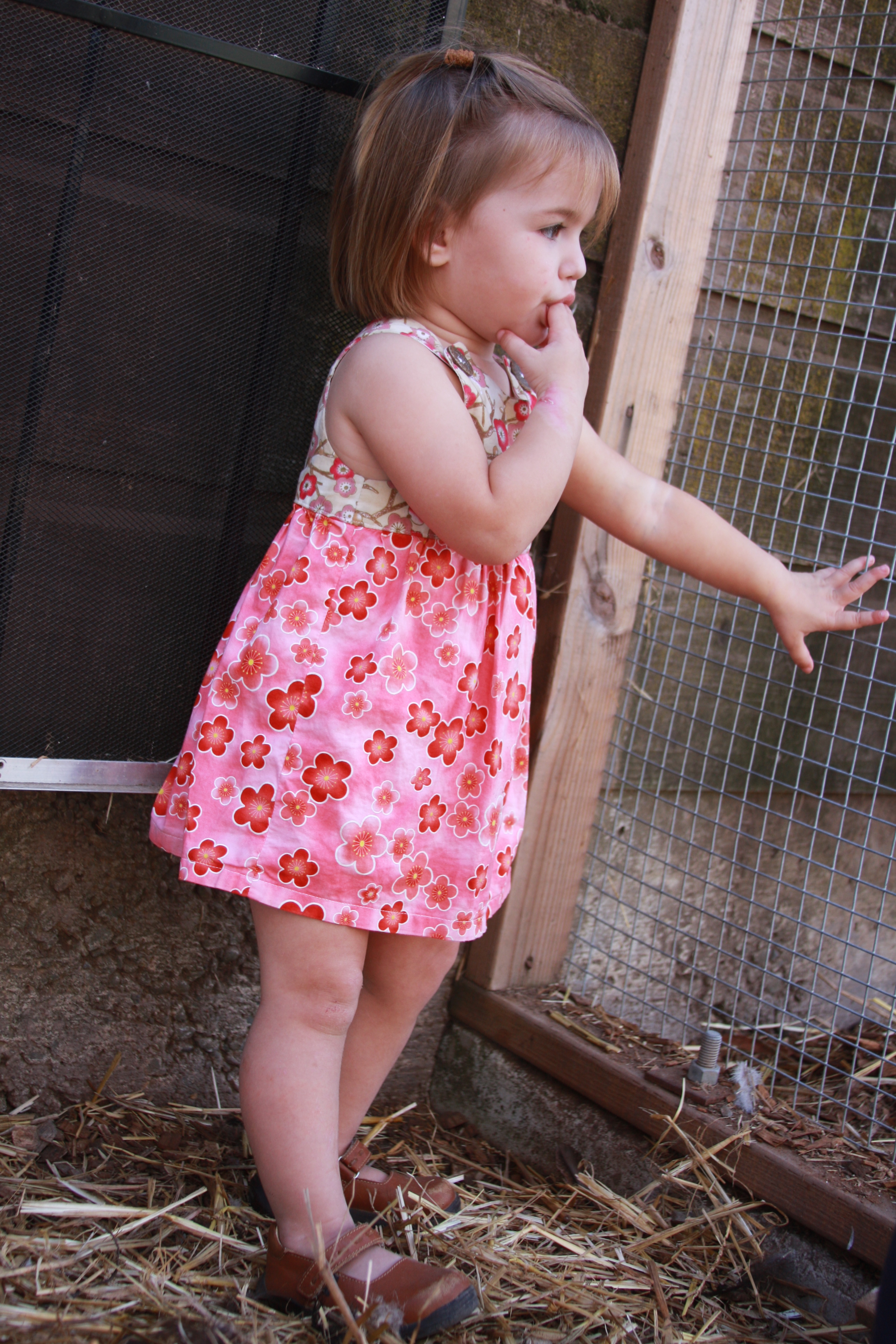 This is another Cherry Blossom jumper for a 1 -2 year old. I put a flounce on the bottom instead of gathers. I love the fulness a circle skirt bottom gives to a dress. This jumper is fully lined. $38. Contact me at kirshaq(at)gmail(dot)com if you would like to order this. You can pay me via paypal and I will send it to you.